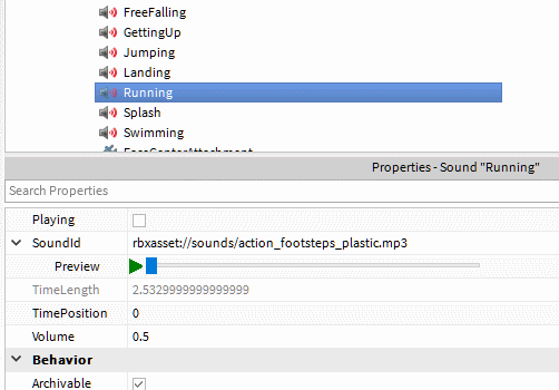 And don’t forget you can also preview sounds directly from the properties window as well.