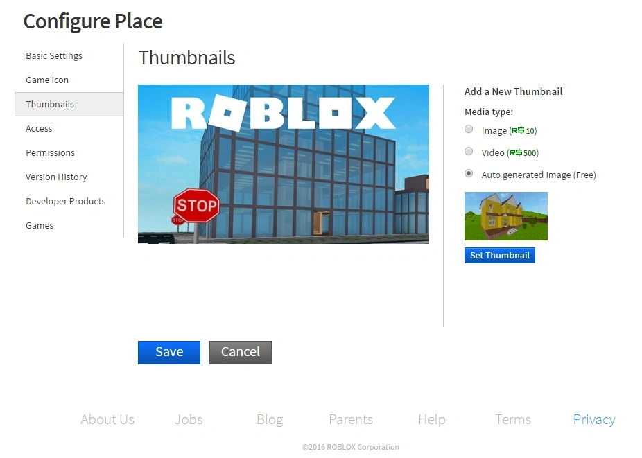 - The overall cost to update thumbnails is being reduced from 20 Robux -> 10 Robux