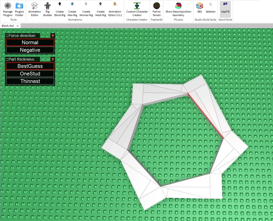 Originally created by Stravant, updated and fixed by Fractality, this tool is more straightforward than SBS. With this handy tool, you can easily fill the distance between objects.