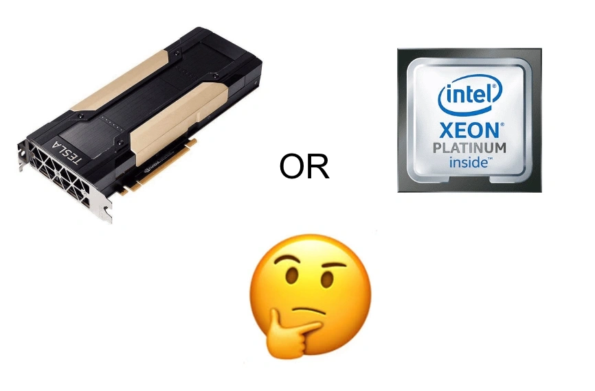 For our model training, GPU was undoubtedly much faster than CPU. Fine-tuning (training) our text classification Bert model took over 10x longer on CPU than on GPU, even when comparing a Tesla V100 GPU against a large cost-equivalent 36-core Xeon Scalable CPU-based server.