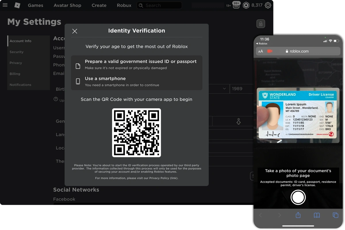 We want you to know that we take our community’s safety and privacy seriously, and Roblox does not store raw ID document nor the selfie data. When a government-issued ID is scanned for verification, an anonymized value is generated, allowing Roblox to safely verify identity without risking exposure of the user’s real identity.