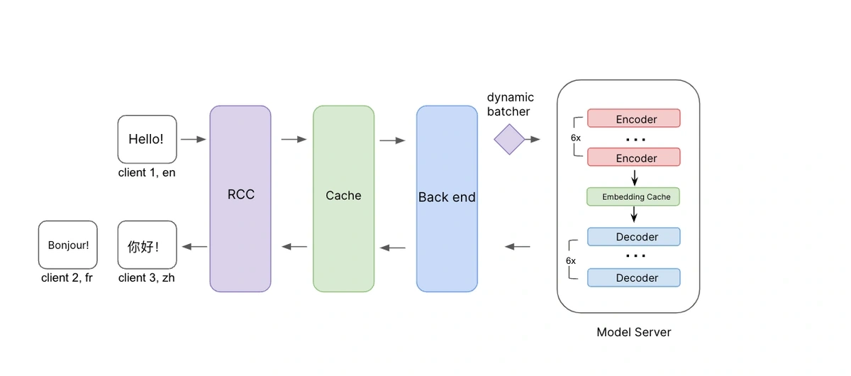 Once the final LLM was ready, we implemented a back end to connect with the model servers. This back end is where we apply additional chat translation logic and integrate the system with our usual trust and safety systems. This ensures translated text gets the same level of scrutiny as other text, in order to detect and block words or phrases that violate our policies. Safety and civility is at the forefront of everything we do at Roblox, so this was a very important piece of the puzzle.