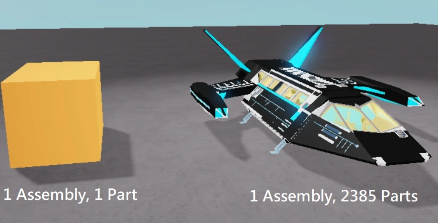 We assume that if one of these assemblies is under a lot of motion, the other assemblies should be awake and moving too. This isn’t always true, so it ends up being a bit more aggressive than necessary. For example, let’s say you have a windmill made of two assemblies: the spinning blades and the base. Ideally, the spinning blades should be awake while the base stays asleep since it’s not moving. However as long as the spinning blades move at a rate above the neighbor velocity threshold, the base will incorrectly stay awake.