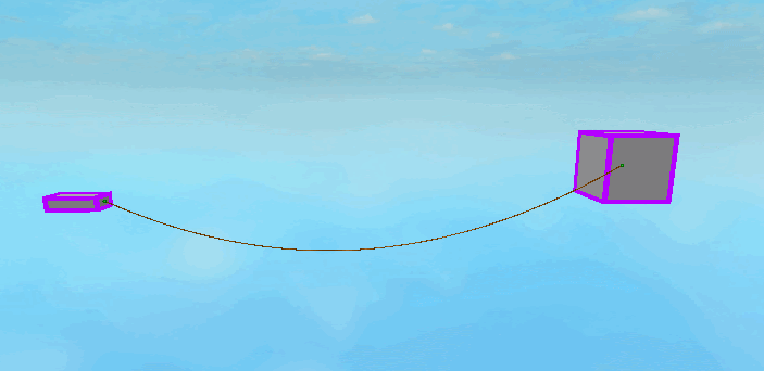 Here is a demonstration of that case. We have two blocks connected by a rope in zero gravity. The large block is awake and moving, while the stationary part is “sleeping checking”. That’s correct, until the large block moves far enough to make the rope become taught.