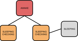 This ideal behavior can cause problems with other kinds of mechanisms. You can have one assembly moving just fast enough to stay awake, but slow enough to keep its neighbors in the sleep checking state. If the awake assembly moves to a point that would require it’s sleeping neighbor to move as well, they both get stuck and end up asleep.